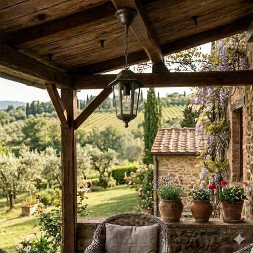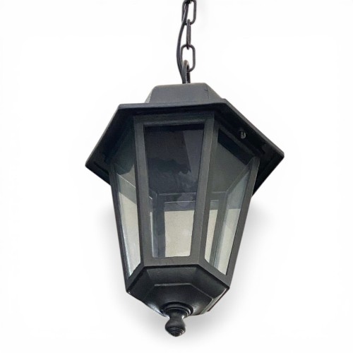 La lanterna presenta pareti in policarbonato trasparente che permettono una diffusione della luce a 360 gradi, mettendo in risalto la lampadina interna.