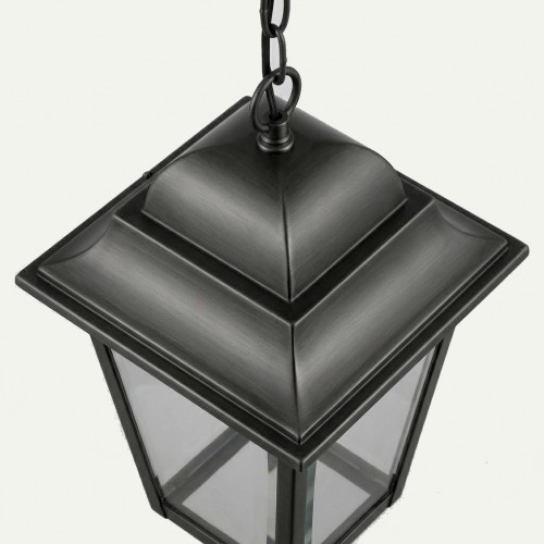 Lanterna realizzata in alluminio pressofuso, un materiale resistente agli agenti atmosferici con finitura grigio canna di fucile.