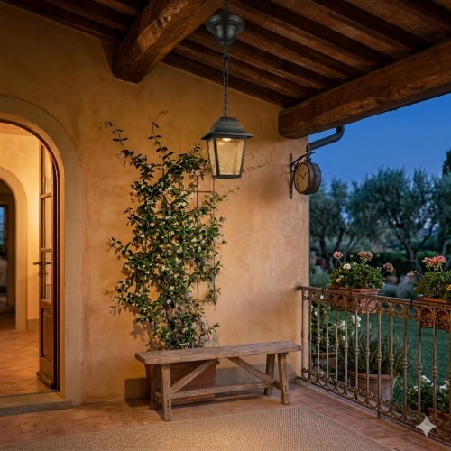 La lanterna presenta pareti in vetro trasparente che permettono una diffusione della luce a 360 gradi, mettendo in risalto la lampadina interna.