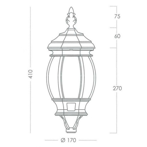 Lanterna modello Mini America realizzata in pressofusione di alluminio di forma cilindrica con coroncina floreale e policarbonato trasparente o opale Art.12028