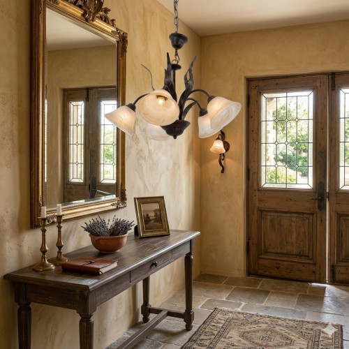 Lampadario a sospensione in stile rustico o arte povera, ideale per ambienti dal tocco tradizionale o country.