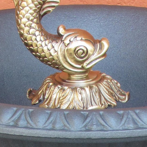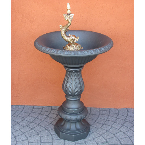 Fontanella ornamentale a zampillo con vasca circolare base decorativa ottagonale e elemento decorativo e foglie d'acanto. Art.1012