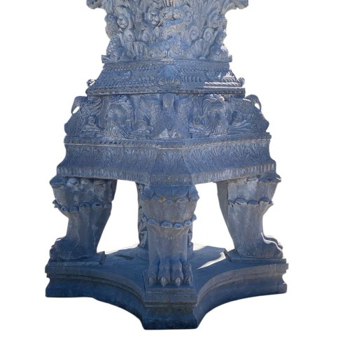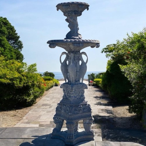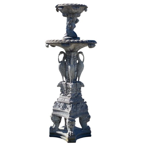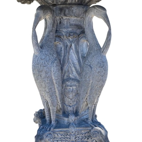 Al centro vi sono figure di ibis scolpiti con grande realismo, sostenendo la vasca superiore.