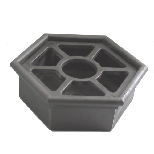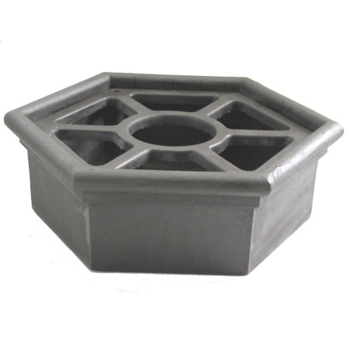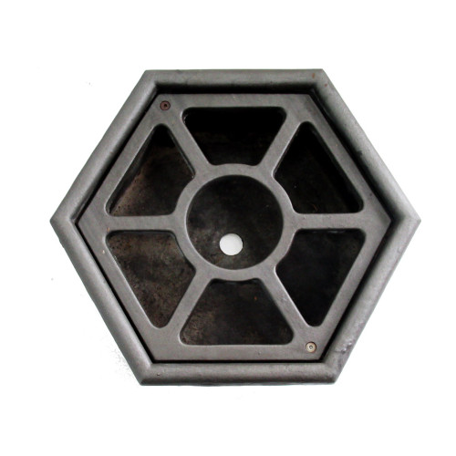 Vaschetta in ghisa dalla forma esagonale adatta alla raccolta delle acque di pompe da pozzo o fontane.