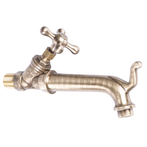 Rubinetto ottone Bocca porta secchiello con valvola maniglia inclinata a croce, attacco portagomma, art.13286/a.