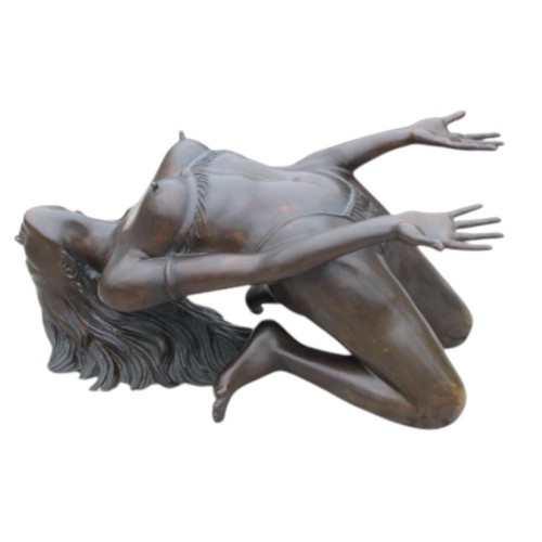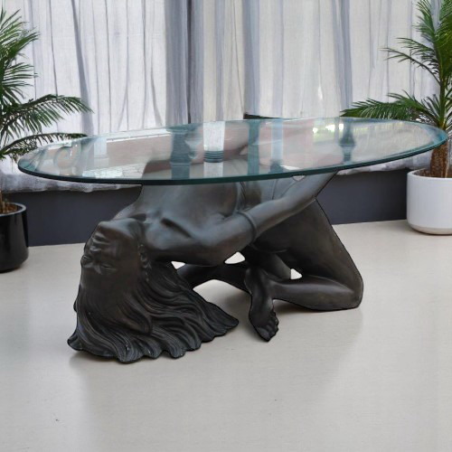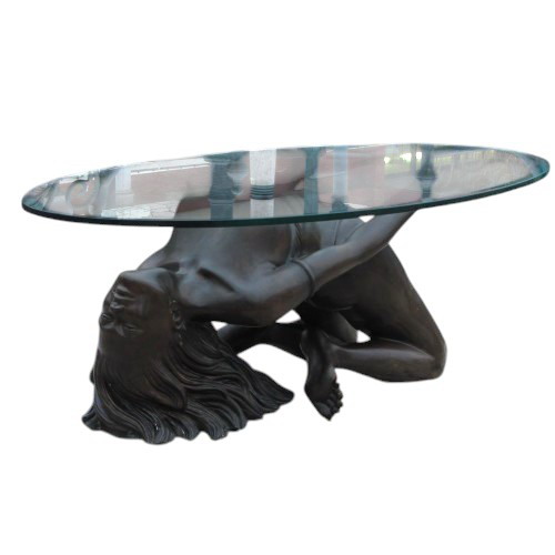 La scultura in bronzo viene utilizzata come base per tavolino da fumo.