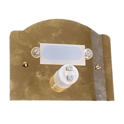 Realizzato in lastra di ottone da orologiaio spessore 3 mm e pulsante in ottone.
