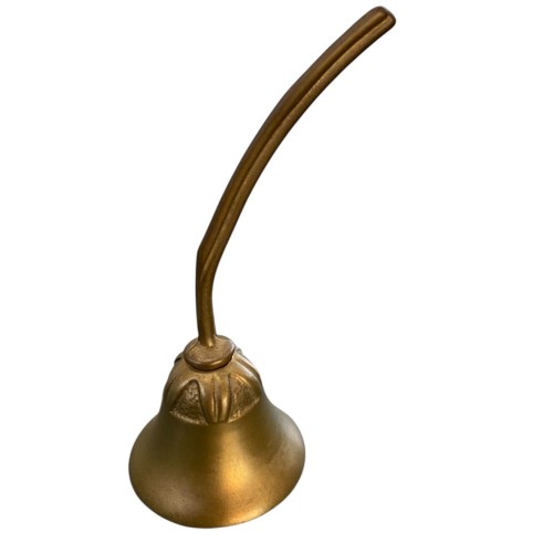 Campanello da appoggio  realizzato in ottone brunito, finitura che regala all'oggetto  un'aspetto caldo e vintage.