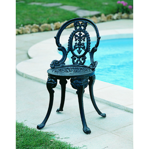 Sedia da interno, esterno, portico, giardino, casa. La sedia è realizzata in fusione di alluminio in terra, tecnica di produzione tradizionale e prettamente artigianale che prevede riproduzioni fedeli delle epoche passate. La splendida fattura dell'arredo rende la sedia unica per qualità e rifinitura.