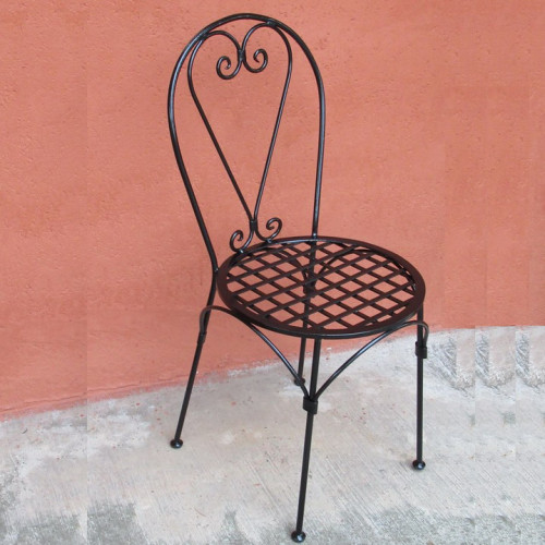 Poltrona realizzata in ferro battuto e forgiato e zincata a caldo. Schienale anatomico in tondino di ferro con ricci,