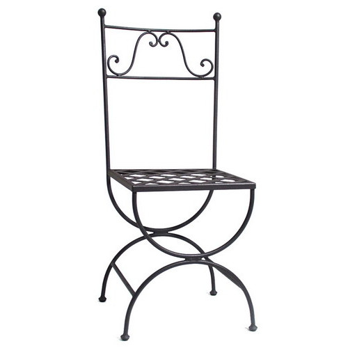 Sedia realizzata in ferro battuto e forgiato e zincata a caldo. Schienale con ricci.