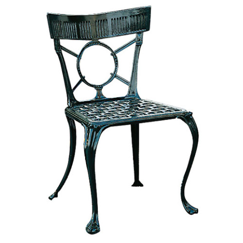 Sedia da interno, esterno, portico, giardino, casa. La sedia è realizzata in fusione di alluminio in terra, tecnica di produzione tradizionale e prettamente artigianale che prevede riproduzioni fedeli delle epoche passate. La splendida fattura dell'arredo rende la sedia unica per qualità e rifinitura.