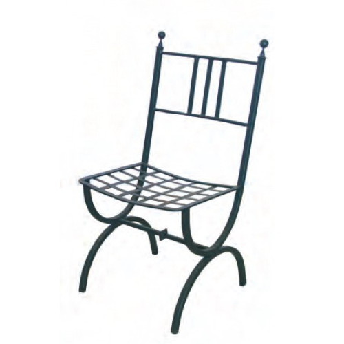 Sedia realizzata in ferro battuto e forgiato e zincata a caldo. Schienale anatomico realizzato con tre fasce in ferro piatto.