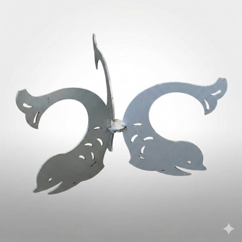 La struttura è composta da tre profili di delfini disposti a raggiera. Ogni delfino è raffigurato in una posizione arcuata, quasi come se stesse saltando fuori dall'acqua.