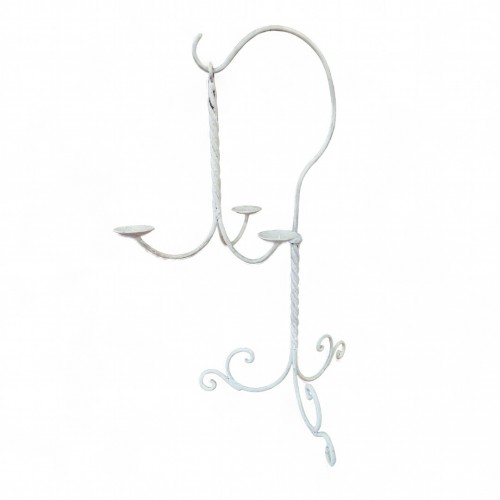 Porta candele da appoggio artistico, realizzato in ferro battuto con finitura "shabby-chic"