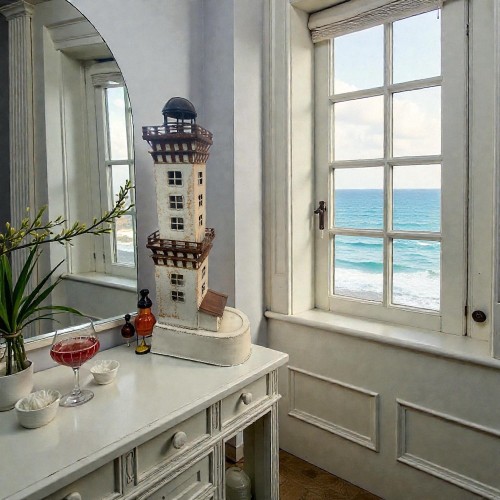 Realizzato in ferro, il faro BUDAPEST è caratterizzato da dettagli meticolosi, come la verniciatura realistica e le finestre incise, che lo rendono un'aggiunta affascinante per ogni ambiente.
