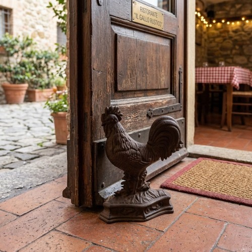 Aggiungi un tocco di fascino rurale e stabilità alla tua casa con il nostro fermaporta a forma di galletto.