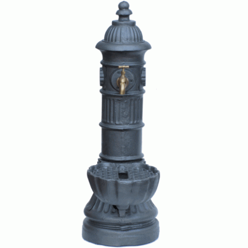 Fontana per giardino, arredo urbano, piazza e parco realizzata in fusione di alluminio. La parte superiore della fontana è ispezionabile tramite 2 sportelli laterali in modo da consentire l'ispezione e il montaggio del rubinetto.