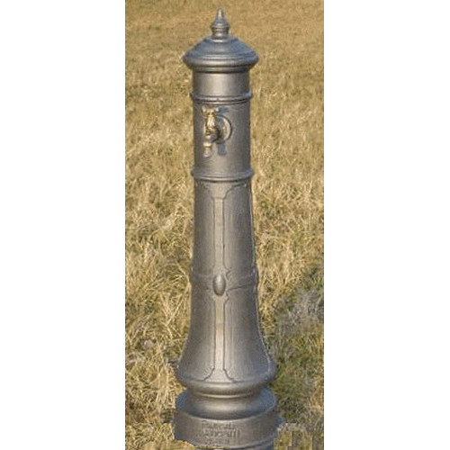 La parte superiore della fontana è rimovibile in modo da consentire l'ispezione e il montaggio del rubinetto. La fontana è realizzata in fusione di ghisa tratta con antiruggine ad immersione e nello standard con vernice ad immersione micacea di colore antracite. Il foro nella fontana del rubinetto è di diametro mm 28 è prevede l'uso di un manicotto in ferro standard (non fornito) filettato internamente a 1/2" per il montaggio del rubinetto e l'accoppiamento con l'impianto; è previsto un blocco tramite una vite che serra il manicotto e il rubinetto alla fontana. La colonna della fontana in ghisa è cava per tutta la lunghezza.