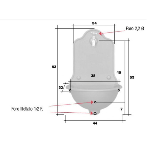 -Con foro di scarico rivolto verso il muro di misura da 1/2"F in modo da essere installata in corrispondenza di scarichi a parete.