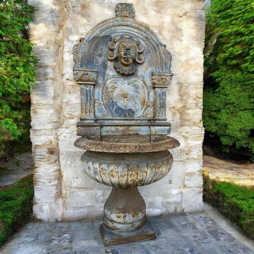 Fontana da parete realizzata in ghisa perfetta dall'aspetto monumentale e dal disegno rinascoimentale e barocco.