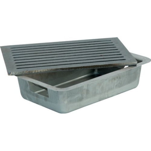 Raccoglicenere per camino. Realizzato in lamiera stampata, con griglia in ghisa.