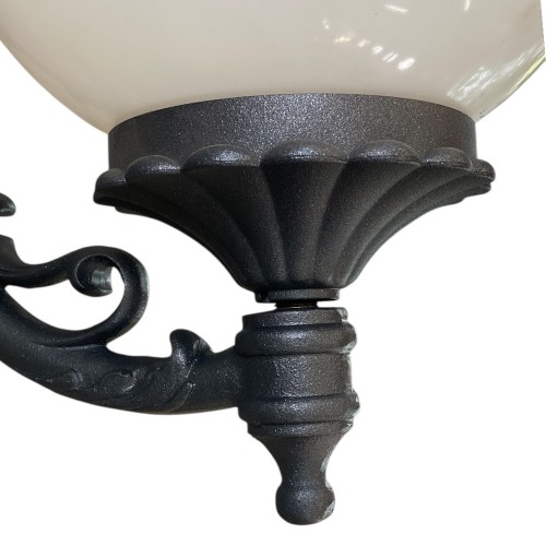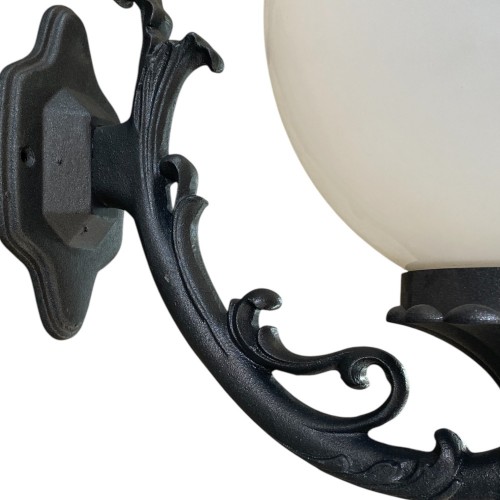 Portaglobo in fusione di alluminio. La particolare forma della grif porta sfera consente di tenere l'impianto elettrico protetto dall'acqua e permette un utilizzare sicuro all'esterno.