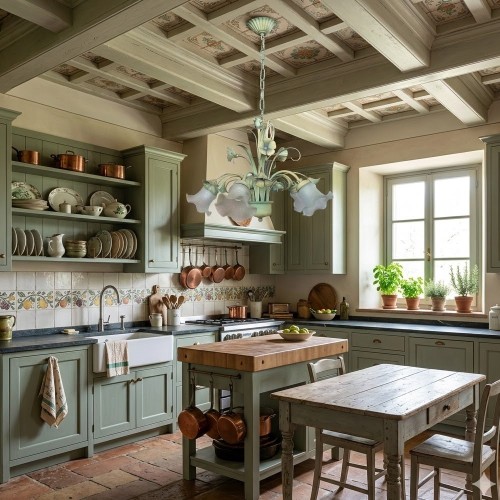 La struttura portante è realizzata in ferro battuto, modellato con linee curve e sinuose che imitano steli e foglie con finitura verde salvia con sfumature dorate/argentee , che conferisce al pezzo un aspetto "shabby chic" o vintage.