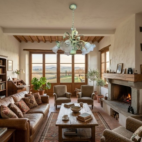 Lampadario a sospensione a 5 luci in stile classico e floreale, caratterizzato da un design romantico che richiama le forme della natura.