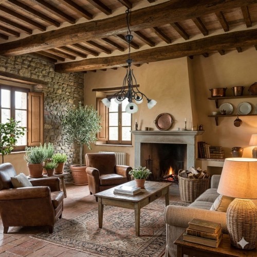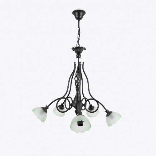 Lampadario a 5 luci dallo stile rustico e classico, tipico dell'artigianato in ferro battuto, perfetto per ambienti come sale da pranzo, cucine abitabili o casali