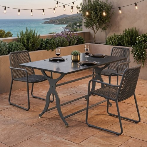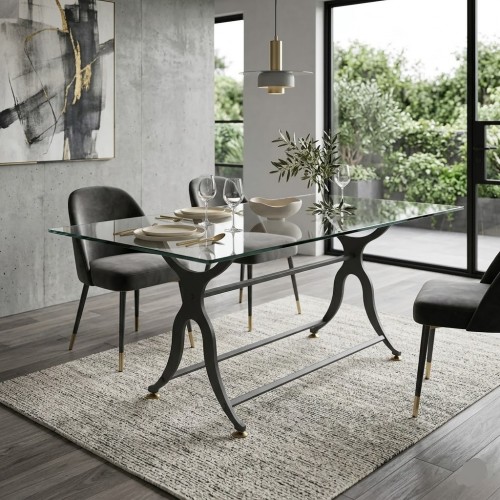 Presenta un'estetica che fonde il gusto industriale con linee più classiche e sinuose. La forma dei due supporti laterali ricorda vagamente una "X" stilizzata o una sagoma antropomorfa, conferendo dinamismo all'intera struttura.