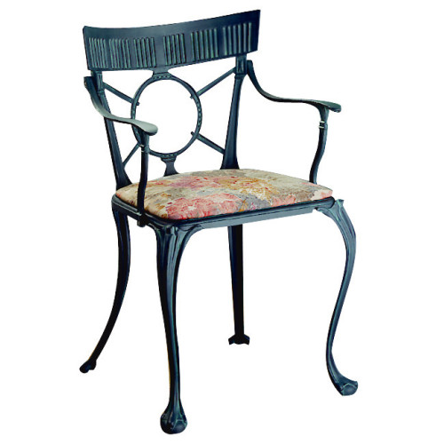 Poltrona da interno, esterno, portico, giardino, casa. La poltrona è realizzata in fusione di alluminio in terra, tecnica di produzione tradizionale e prettamente artigianale che prevede riproduzioni fedeli delle epoche passate. La splendida fattura dell'arredo rende la poltrona unica per qualità e rifinitura.
