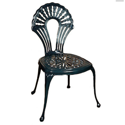 Sedia realizzata in fusione di alluminio in terra, tecnica di produzione tradizionale e prettamente artigianale che prevede riproduzioni fedeli delle epoche passate. La splendida fattura dell'arredo rende la sedia unica per qualità e rifinitura.