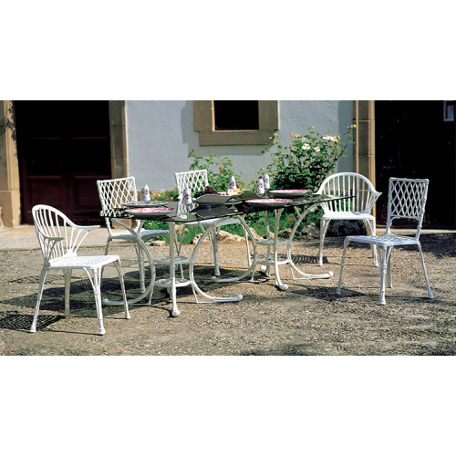 Sedia da interno, esterno, portico, giardino o casa. Il tavolo è realizzate in fusione di alluminio in terra, tecnica di produzione tradizionale e prettamente artigianale che prevede riproduzioni fedeli delle epoche passate. La splendida fattura dell'arredo rende la sedia unica per qualità e rifinitura.