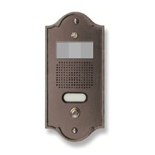 Pulsantiera per videocitofono analogico realizzata in ottone colore testa di moro e pulsante in ottone.