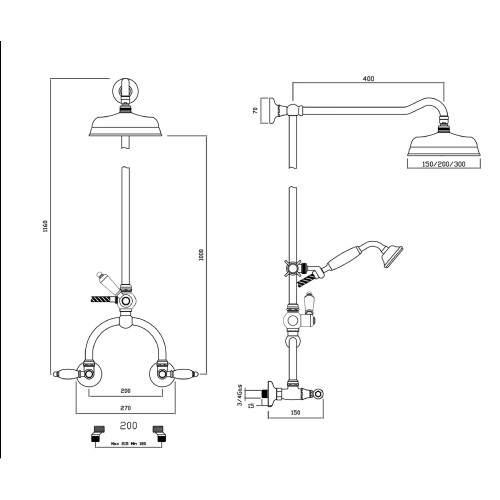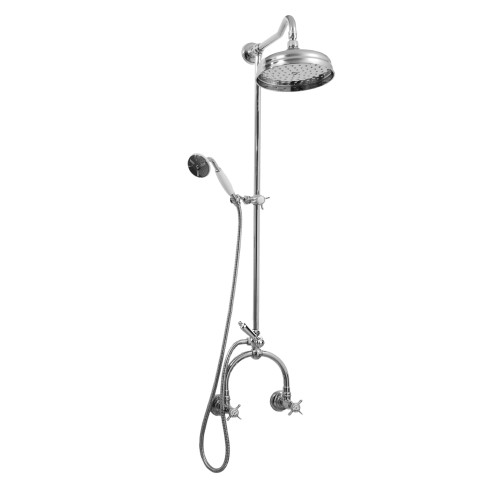 Gruppo doccia realizzato in ottone con valvole apri chiudi acqua calda e fredda e comodo doccino dallo stile lineare e moderno. In foto in finitura ottone effetto cromata, è possibile averla anche nelle finiture sotto indicate.