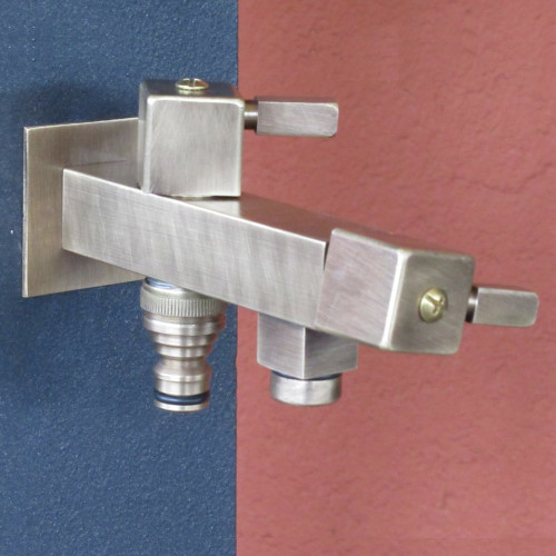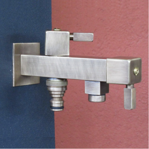 Rubinetto con doppia erogazione dallo stile moderno in ottone per fontanella con profilo squadrato e rosetta quadrata. Art.13373/C1