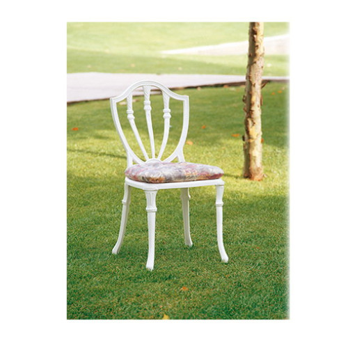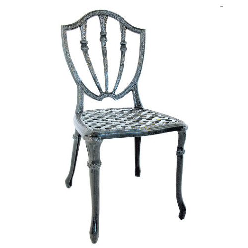 Sedia da interno, esterno, portico, giardino, casa. La sedia è realizzata in fusione di alluminio in terra tecnica di produzione tradizionale e prettamente artigianale che prevede riproduzioni fedeli delle epoche passate. La splendida fattura dell'arredo rende la sedia unica per qualità e rifinitura.
