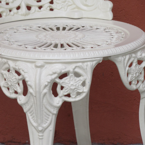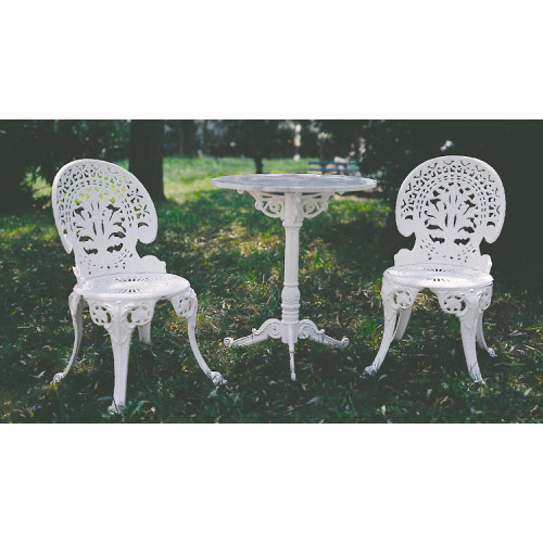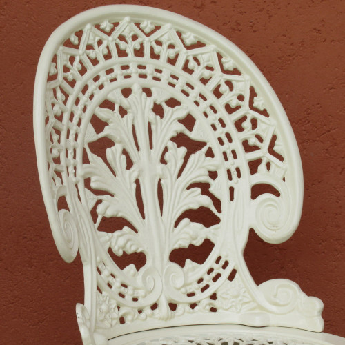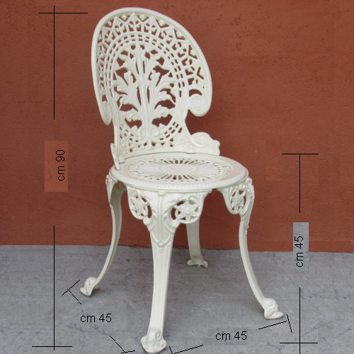 Sedia da giardino, terrazzo o portico ma ottimo elemento di arredo anche per l'interno della vostra casa. La sedia è realizzate in fusione di alluminio in terra, tecnica di produzione tradizionale e prettamente artigianale che prevede riproduzioni fedeli delle epoche passate. La splendida fattura dell'arredo rende la sedia unica per qualità e rifinitura.