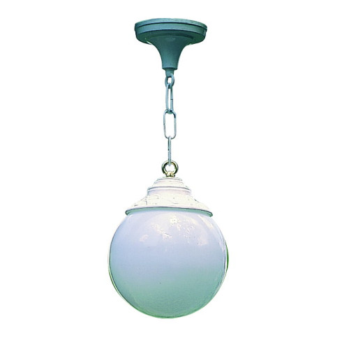 Sospensione per portico e terrazzo con sfera in vetro opale realizzata in fusione di alluminio in terra, tecnica di produzione tradizionale e prettamente artigianale che prevede riproduzioni fedeli delle epoche passate. La splendida fattura della sospensione rende questo elemento d'illuminazione unico per qualità e rifinitura.